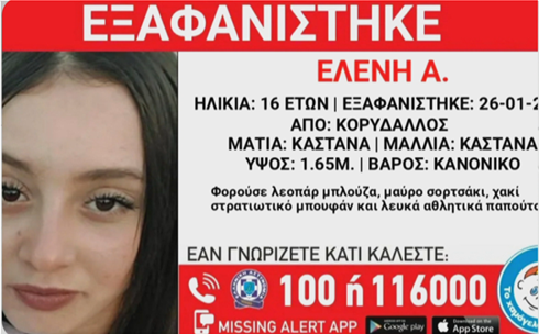 - ΚΟΙΝΩΝΙΑ Εξαφάνιση στον Κορυδαλλό- Νέος συναγερμός για 16χρονη