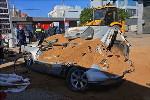 - ΚΟΙΝΩΝΙΑ Ανετράπη στη Βάρη νταλίκα που μετέφερε σακιά με χώμα- "Ισοπεδώθηκε" αυτοκίνητο