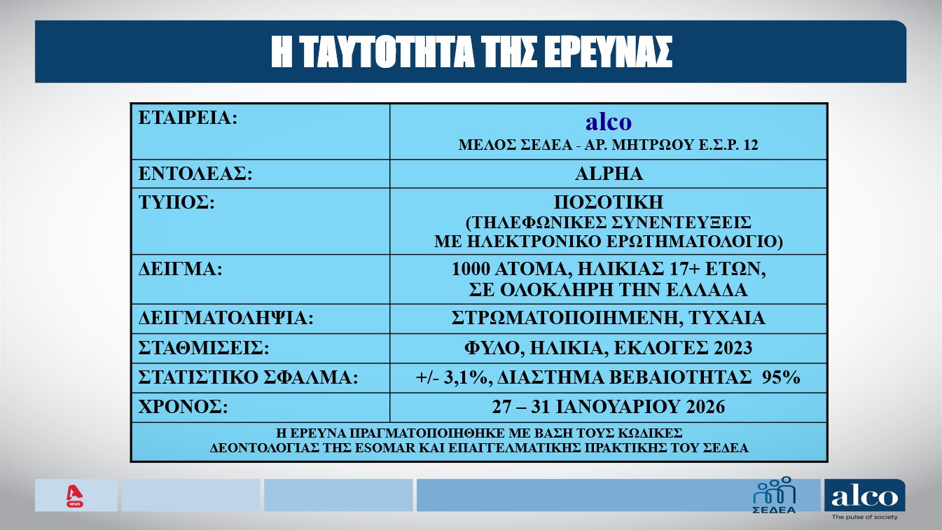 Μεγάλη μηναία δημοσκόπηση της Alco για τον Αlpha.