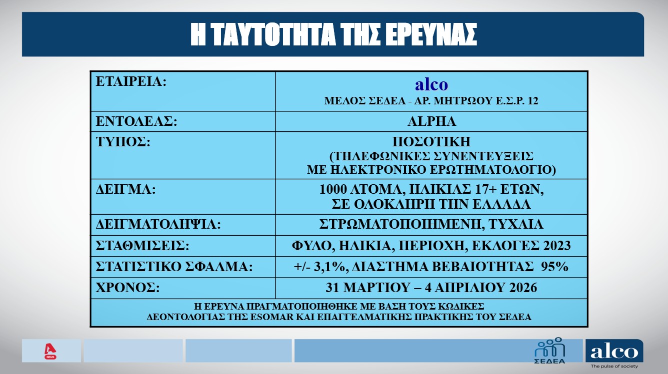 Μεγάλη μηναία δημοσκόπηση της Alco για τον Αlpha.